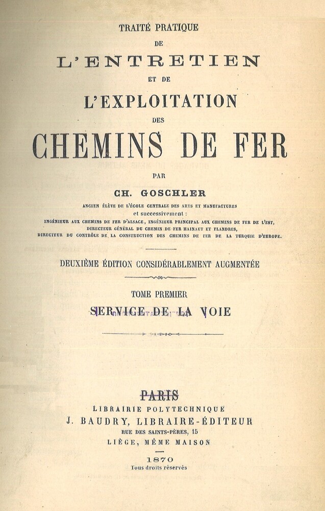 - TitelTraité pratique de l'entretien et de l'exploitation des chemins de fer. Tome I. Service de la voie
