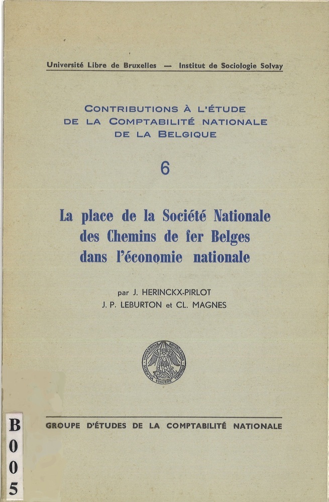 - TitelLa place de la Société Nationale des Chemins de fer Belges dans l'économie nationale. Contributions à l'étude de la comptabilité nationale de la Belgique. 6