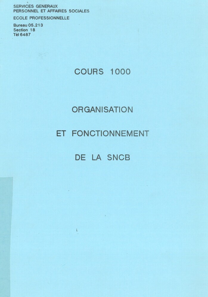 - TitelCours 1000. Organisation et fonctionnement de la SNCB