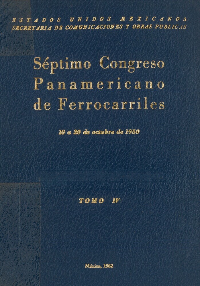 - TitelSéptimo Congreso Panamericano de Ferrocarriles. 10 a 20 de octubre de 1950. Memoria. Tomo IV