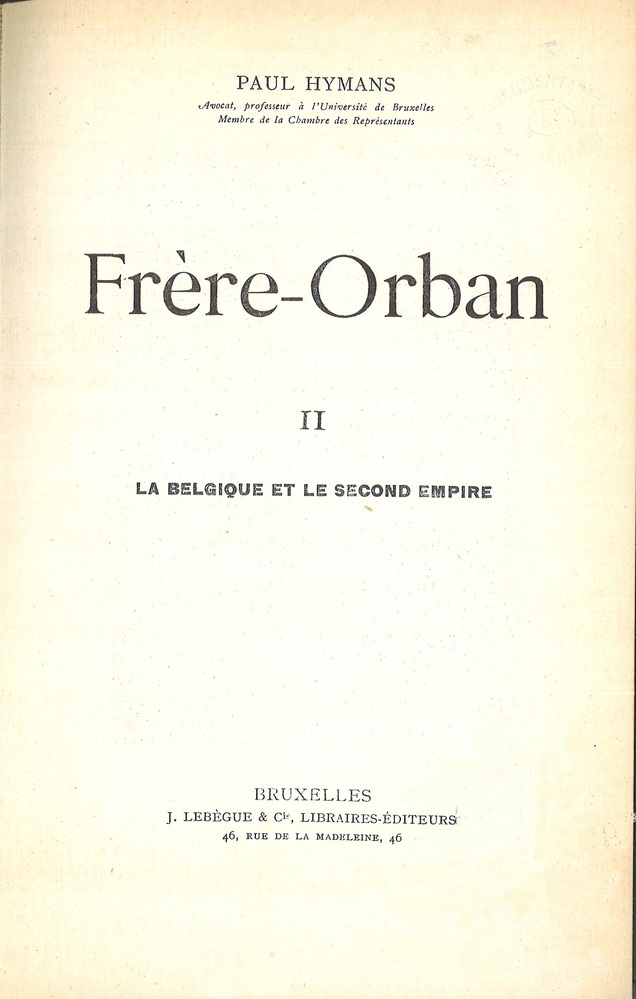 - TitelFrère-Orban. II. La Belgique et le second empire