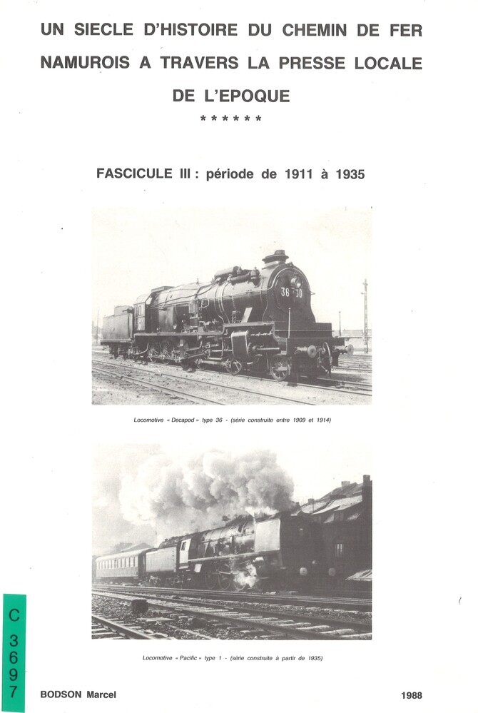 - TitelUn siècle d'histoire du chemin de fer namurois à travers la presse locale de l'époque. Fascicule III : période de 1911 à 1935