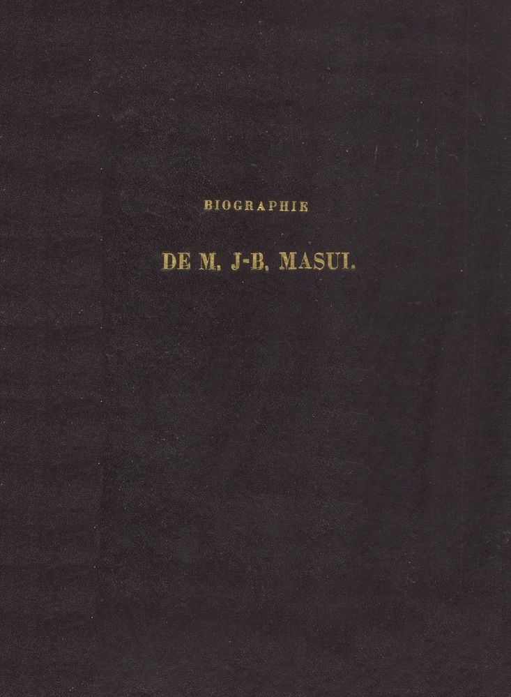 Biographie de M. J.-B. Masui, directeur général des chemins de fer, postes et télégraphes, Commandeur de l'Ordre de Léopold et titulaire de plusieurs Ordres étrangers, précédée de son portrait et suivi des discours prononcés par lesfonctionnaires supérieurs du Département des Travaux Publics, qui l'ont accompagné jusqu'à sa dernière demeure