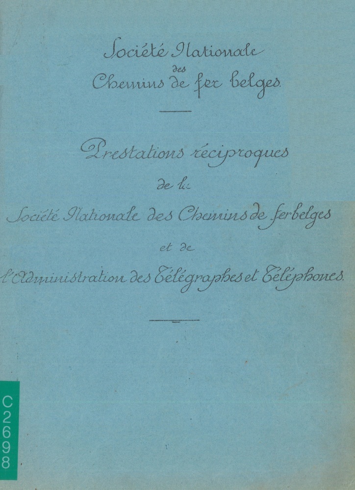 - TitelRèglement des prestations réciproques entre la Société Nationale des Chemins de fer Belges et l'Administration des Télégraphes et Téléphones
