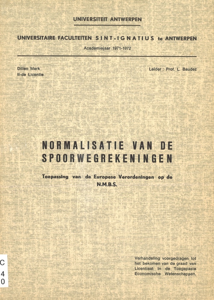 - TitelNormalisatie van de spoorwegrekeningen. Toepassing van de Europese Verordeningen op de N.M.B.S.