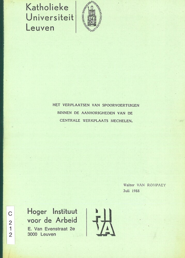 - TitelHet verplaatsen van spoorvoertuigen binnen de aanhorigheden van de centrale werkplaats Mechelen