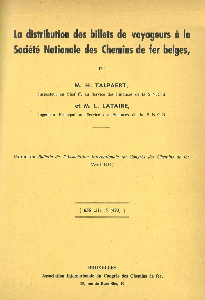 - TitelLa distribution des billets de voyageurs à la Société Nationale des Chemins de fer belges