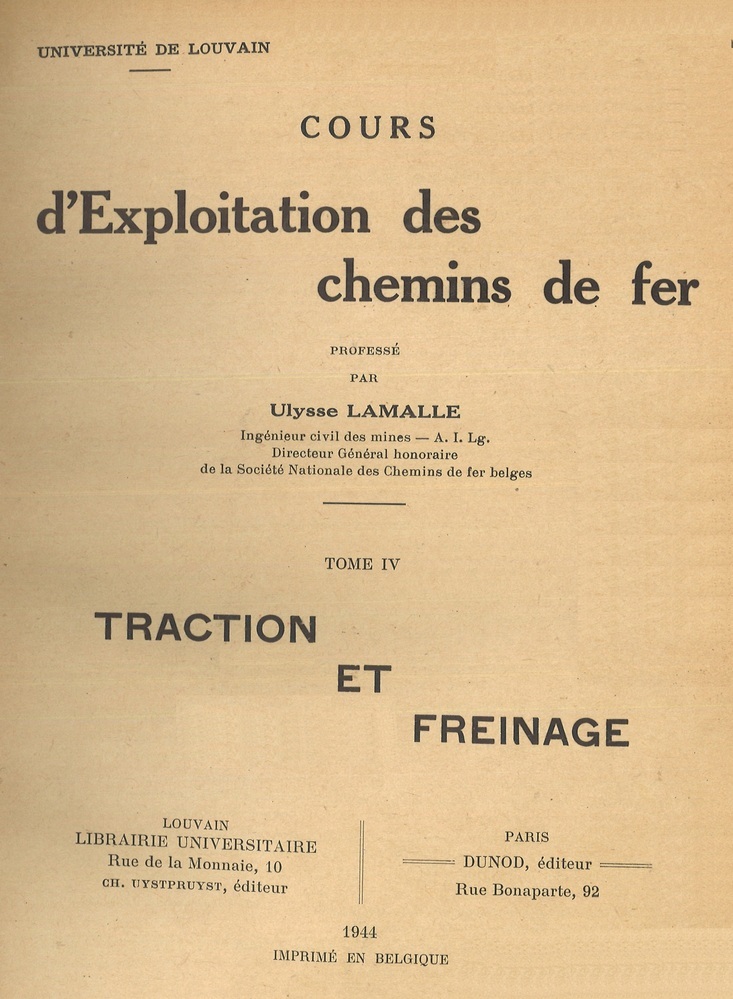 - TitelCours d'exploitation des chemins de fer. Tome IV : Traction et freinage (1° édition)