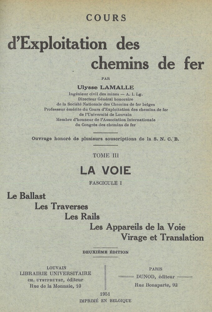 - TitelCours d'exploitation des chemins de fer. Tome III : La voie. Fascicule I : Le ballast. Les traverses. Les appareils de la voie. Virage et translation (2° édition)