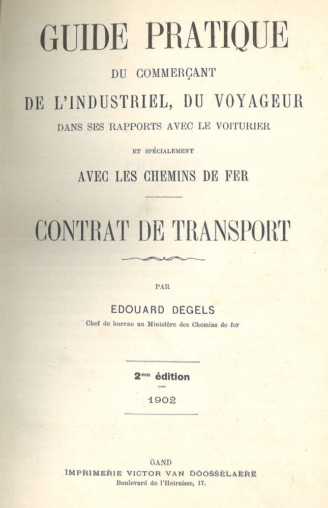 - TitelGuide pratique du commerçant, de l'industriel, du voyageur dans ses rapports avec le voiturier et spécialement avec les chemins de fer. Contrat de transport