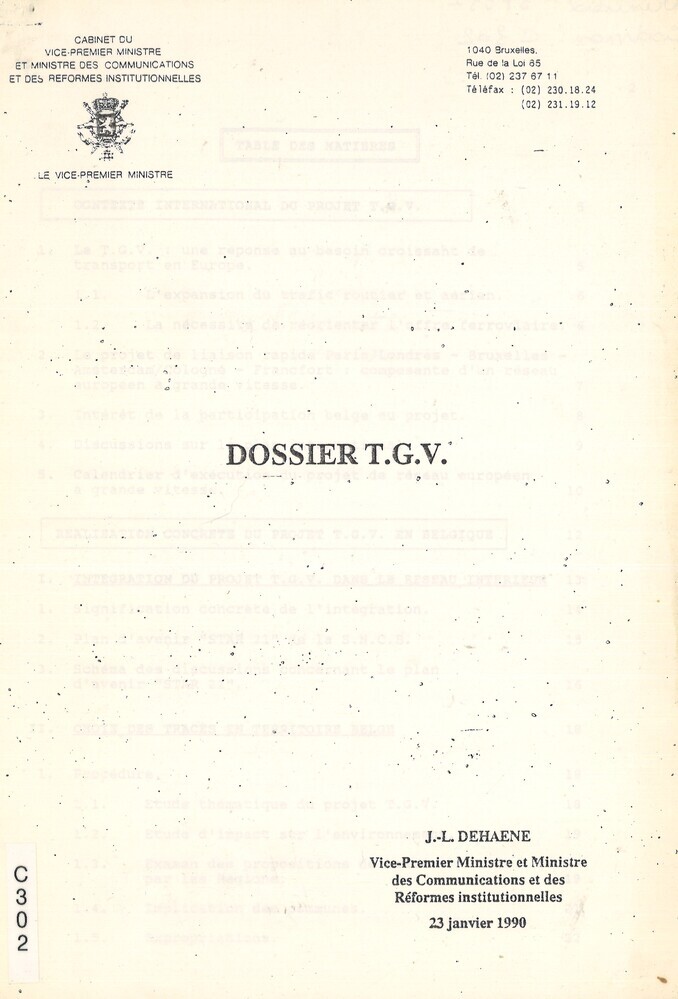 Studie van het kabinet van de Vice-Eerste Minister van Transport en Institutionele Hervormingen over het project van de hogesnelheidstrein in België.