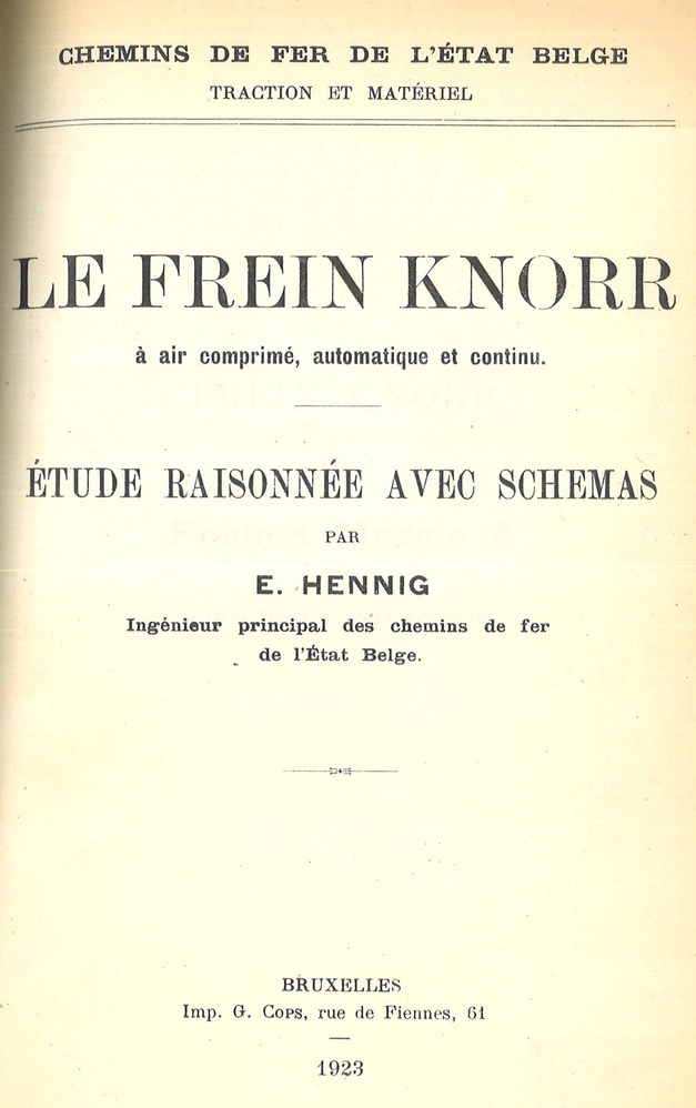 - TitelLe frein Knorr à air comprimé, automatique et continu. Etude raisonnée avec schémas