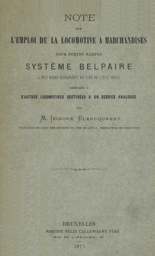 - TitelNote sur l'emploi de la locomotive à marchandises pour fortes rampes système Belpaire à huit roues accouplées du type de l'Etat belge. comparée à d'autres locomotives destinées à un service analogue