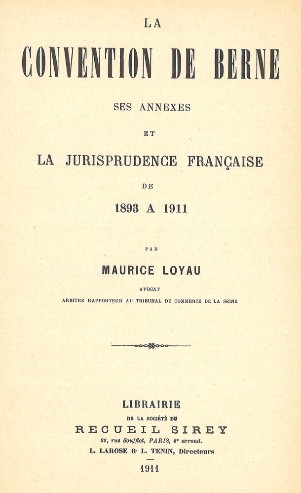 - TitelLa convention de Berne.Ses annexes et la jurisprudence française de 1893 à 1911