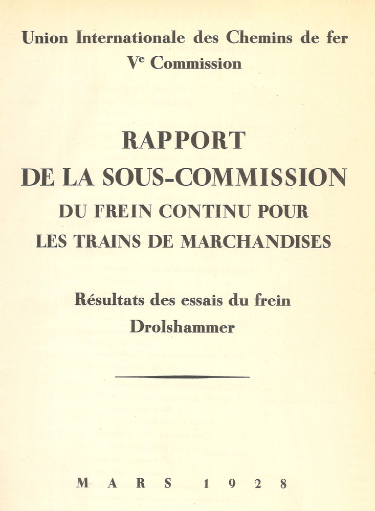 - TitelRapport de la Sous-Commission du frein continu pour les trains de marchandises. Résultats des essais du frein Drolshammer