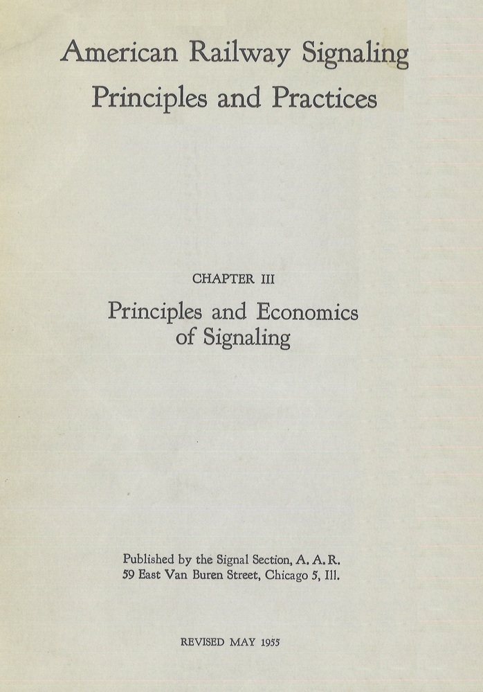 - TitelAmerican Railway Signaling Principles and Practices. Chapter III. Principles and Economics of Signaling