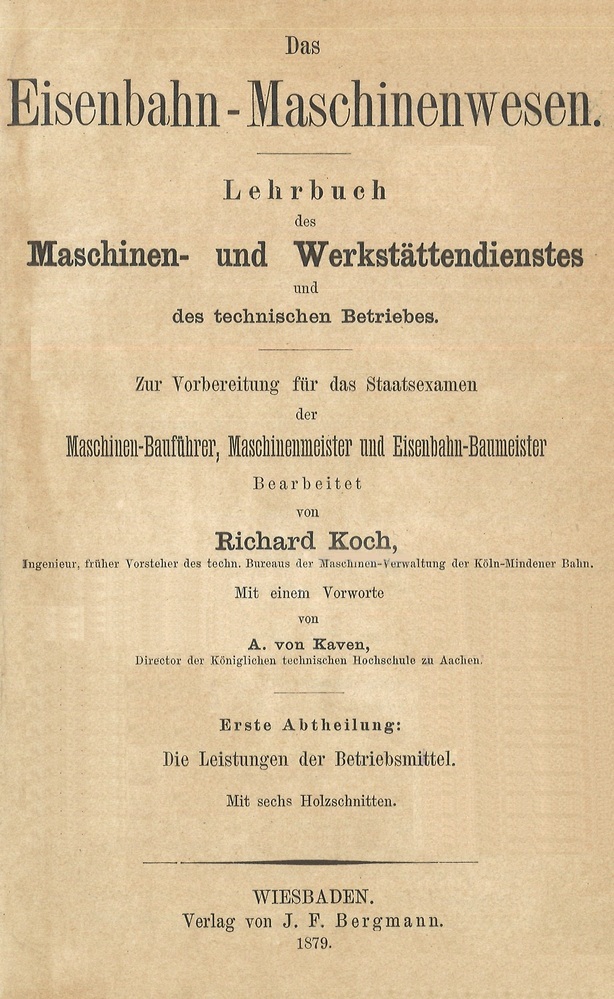 - TitelDas Eisenbahn-Maschinenwesen. Lehrbuch des Maschinen-und-Werkstättendienstes und technischen Betriebes. Erste Abteilung:Die Leistung der Betriebsmittel. Zweite Abteilung:Der Betriebsdienst. Dritte Abteilung:Werstätten-Anlagen
