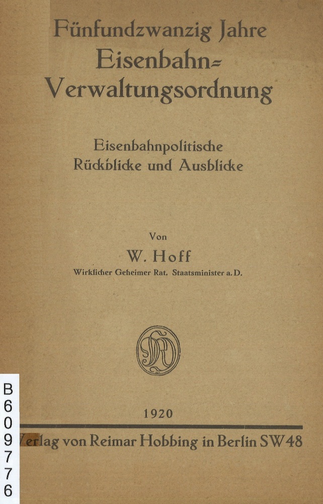 - TitelFünfundzwanzig Jahre Eisenbahn- Verwaltungsordnung Eisenbahnpolitische RÜckblicke aund Ausblicke