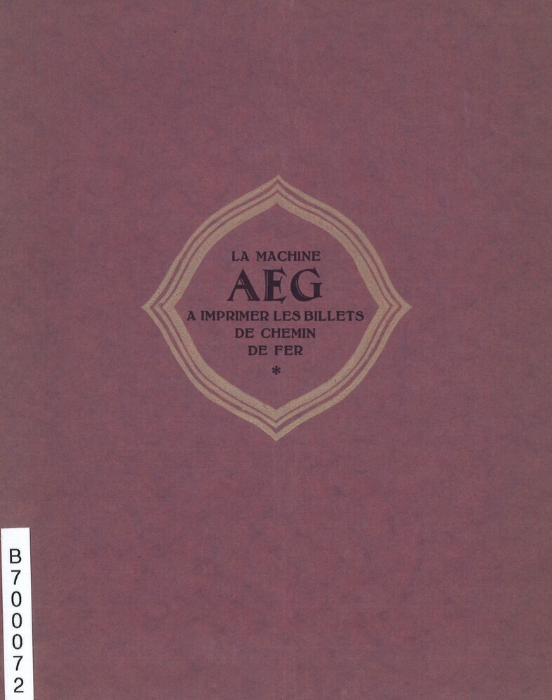 - TitelLa machine AEG à imprimer les billets de chemin de fer
