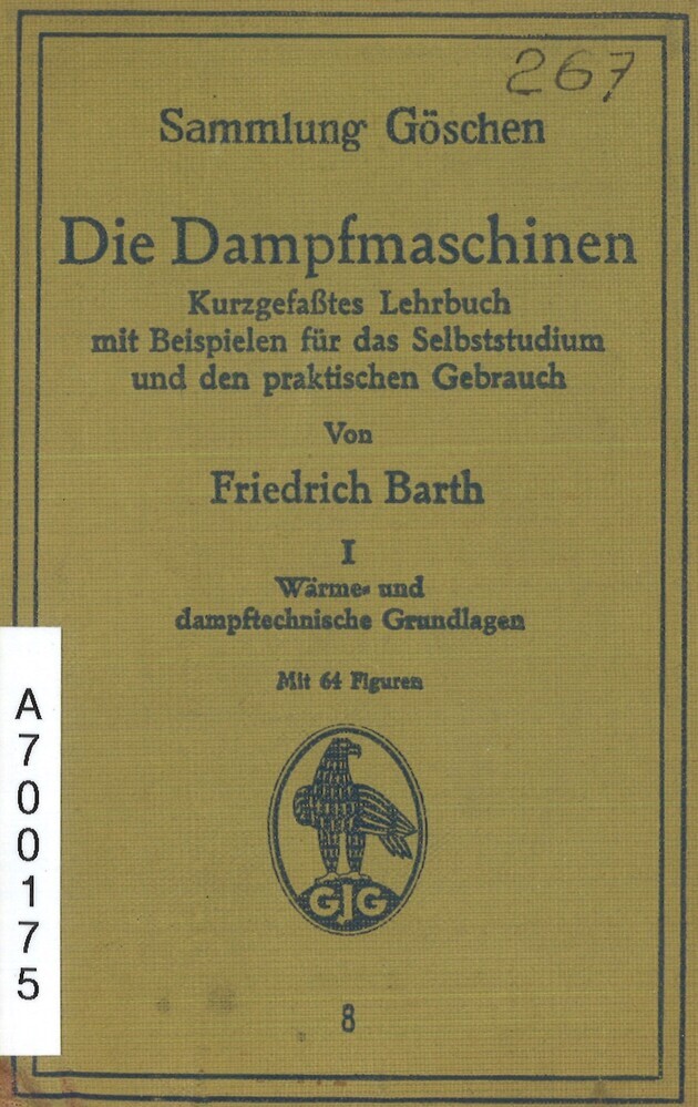 - TitelDie Dampfmaschinen. Kurzgefasstes Lehrbuch mit Beispielen für das Selbststudium und den praktischen Gebrauch. I Wärme- und dampftechnische Grundlagen