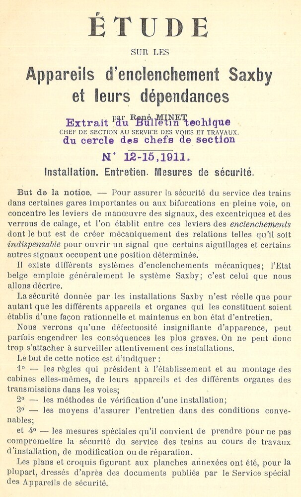 - TitelEtude sur les Appareils d'enclenchement Saxby et leurs dépendances