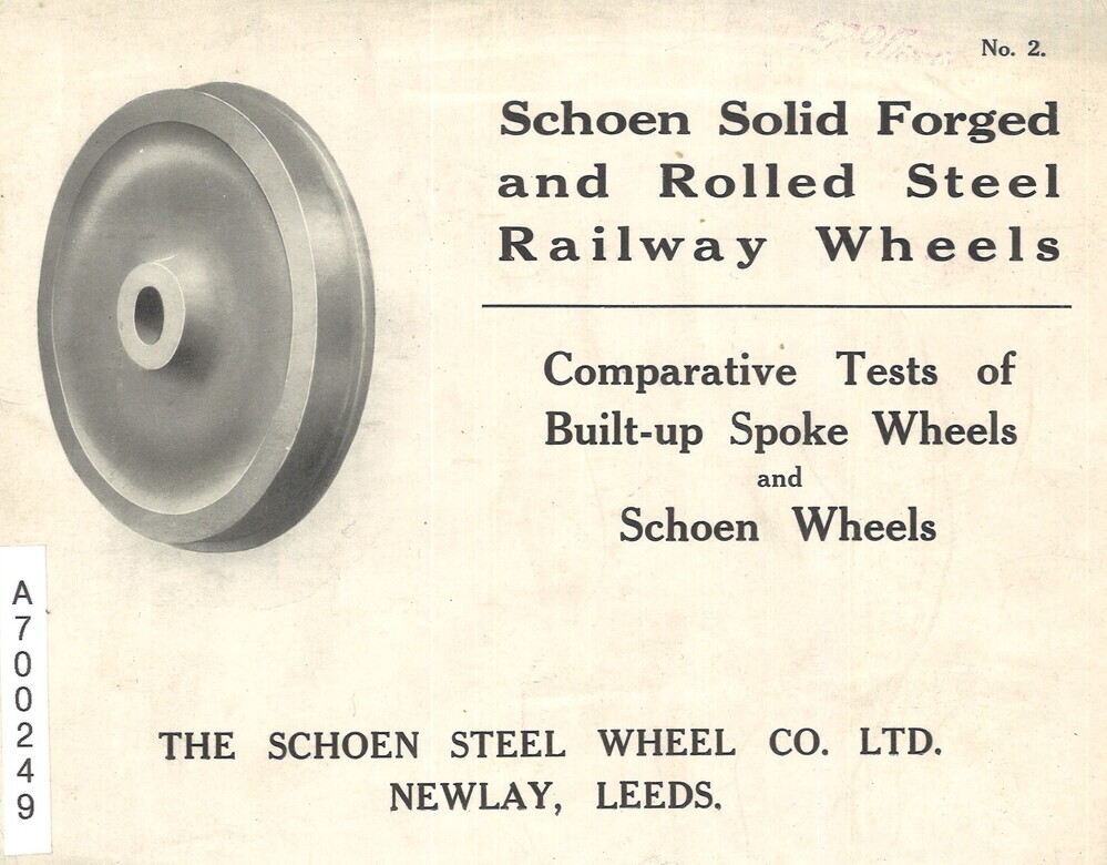 - TitelSchoen Solid Forged and Rolled Steel Railway Wheels. Comparative Tests of Built-up Spoke Wheels and Schoen Wheels N° 2.