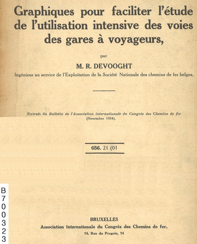 - TitelGraphiques pour faciliter l'étude de l'utilisation intensive des voies des gares à voyageurs. Extrait du Bulletin de l'Association internationale des chemins de fer Vol XVI N°11 p.1217-1233