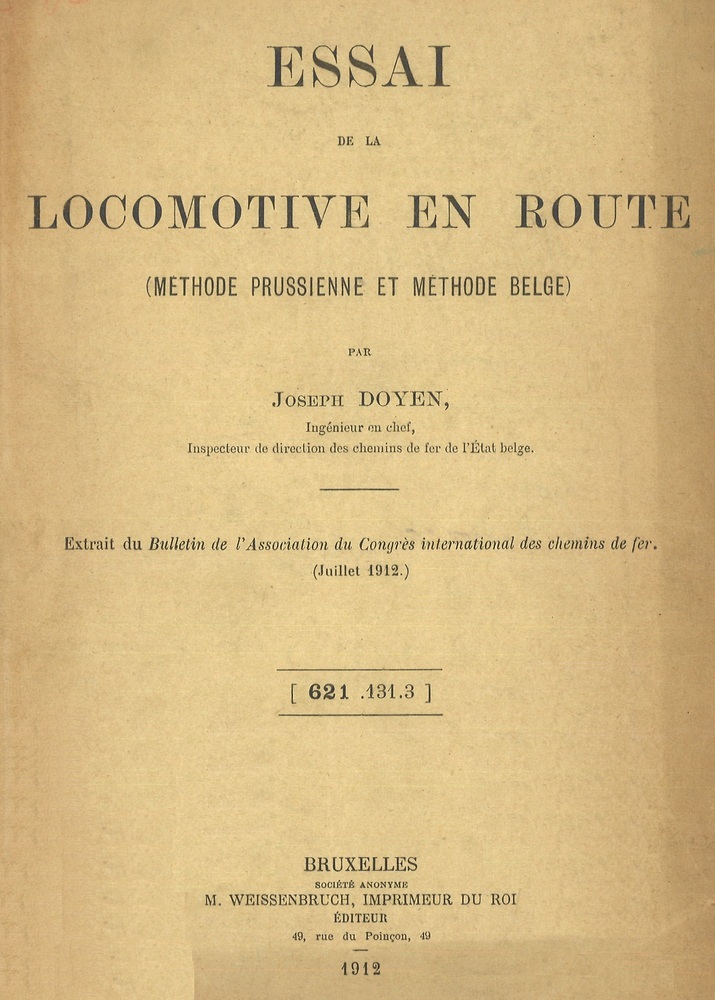 - TitelEssai de la locomotive en route (méthode pruissienne et méthode belge). Extrait du Bulletin de l'Association internationale des chemins de fer Vol XXVI N°7 p.693-701