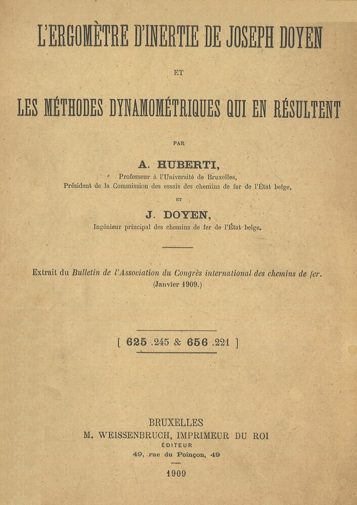 - TitelL' ergomètre d'inertie de Joseph Doyen et les méthodes dynamométriques qui en résultent. Extrait du Bulletin de l'Association internationale des chemins de fer Vol XXIII N°1