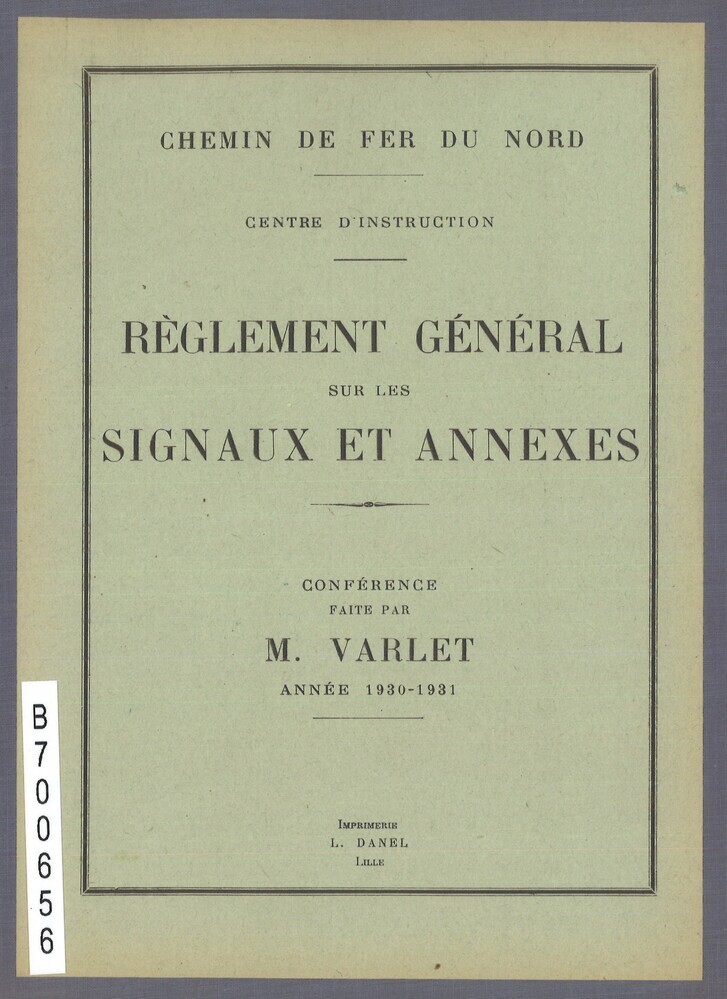 - TitelChemin de fer du Nord. Centre d'instruction. Réglement général sur les signaux et annexes