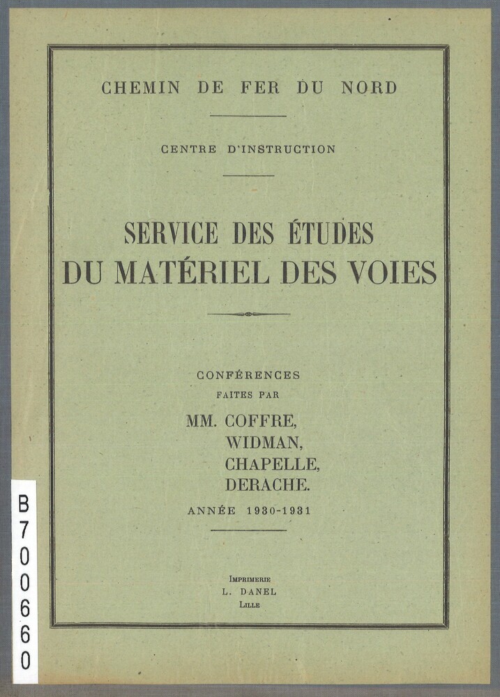 - TitelChemin de fer du Nord. Centre d'instruction. Service des études de la voie