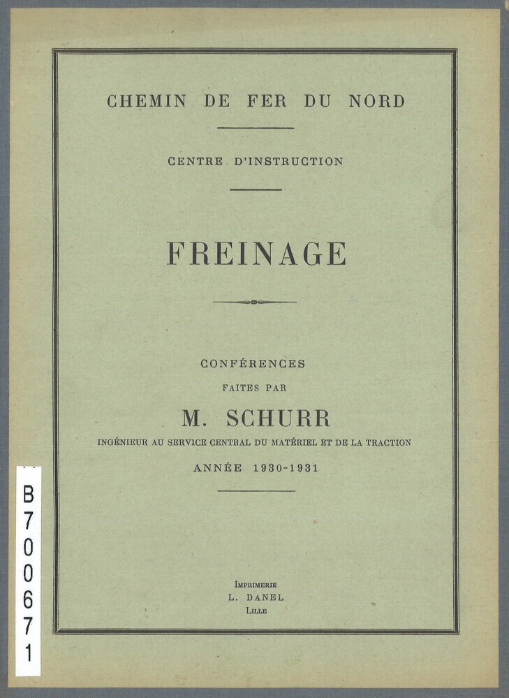 - TitelChemin de fer du Nord. Centre d'instruction. Freinage