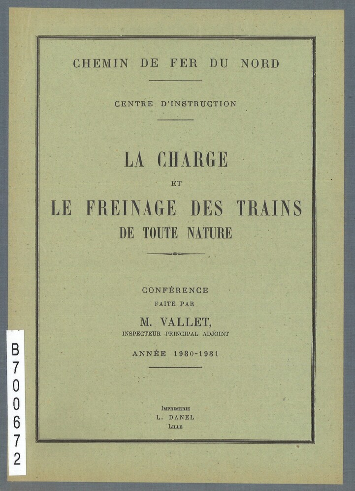 - TitelChemin de fer du Nord. Centre d'instruction. La charge et le freinage des trains de toute nature