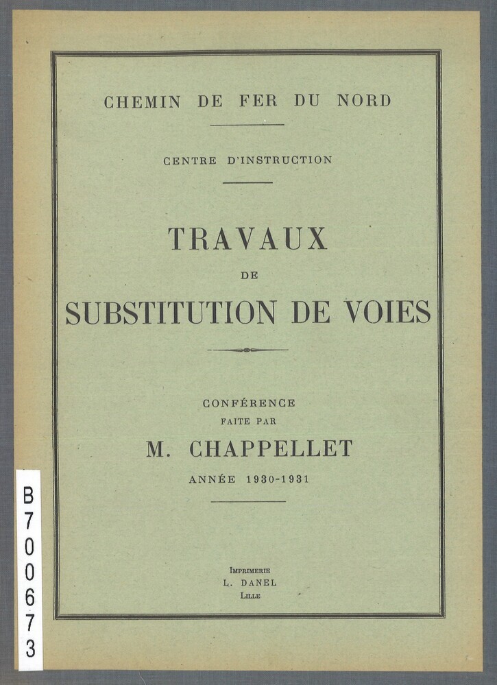 - TitelChemin de fer du Nord. Centre d'instruction. Travaux de substitution de voies