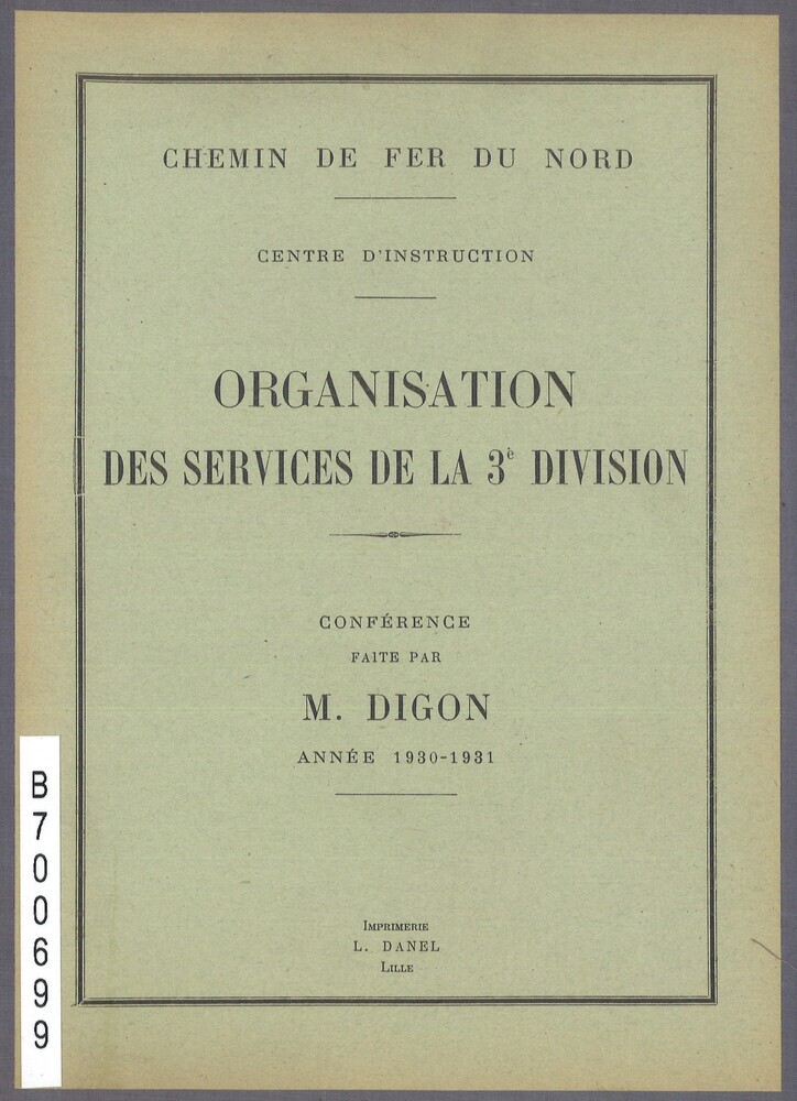 - TitelChemin de fer du Nord. Centre d'instruction. Organisation des services de la 3e division