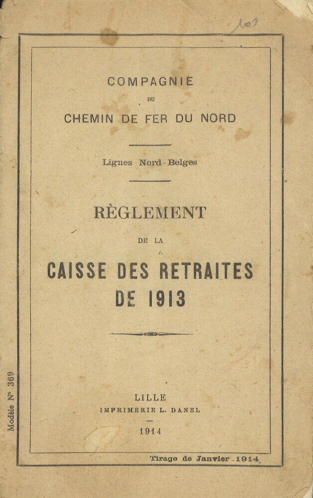 - TitelCompagnie du Chemin de fer du Nord. Lignes Nord-Belges. Règlement de la caisse de retraites de 1913