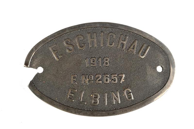 BeschrijvingOp de ovale plaat staat 'F. Schichau 1918 F. N° 2657 Elbing'. Het was één van de vele firma's die de Pruisische stoomlocomotieven P8 (2C Ten Wheel) leverden.
