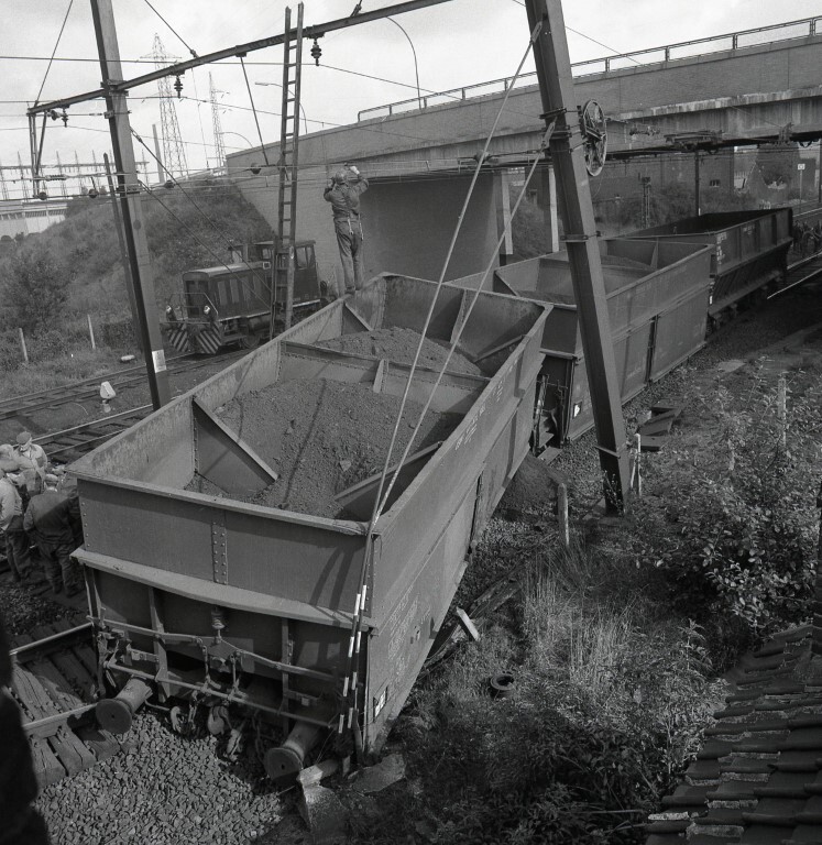 De fotogroep bevat 20 negatieven. De foto's tonen spoorwegarbeiders die de schade herstellen aan de bovenleiding en het spoor. Deze werd veroorzaakt door de ontsporing van een tremelwagen.