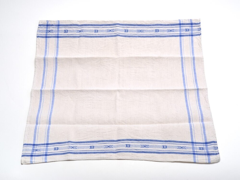 BeschrijvingDe witte vaatdoek heeft een blauwe sierband langs alle zijden. Boven- en onderaan zijn NMBS-logo's verwerkt in de sierband.