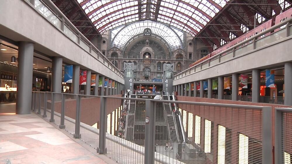 BeschrijvingZicht op de stationsoverkapping, het atrium en de winkels.
