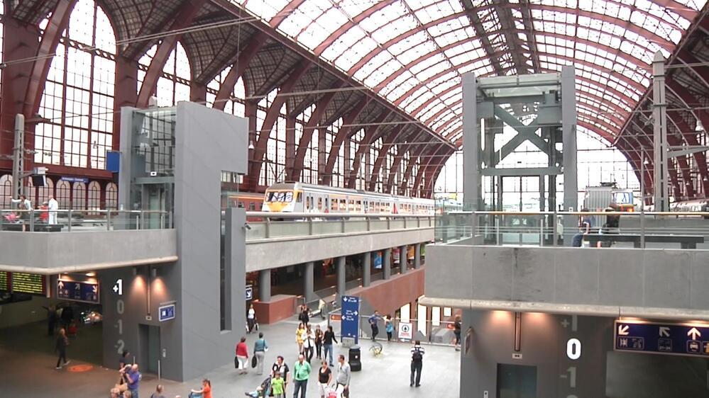 BeschrijvingZicht op de spoorhal en de sporen op niveau +1. Aan de perrons staan verschillende reizigerstreinen.