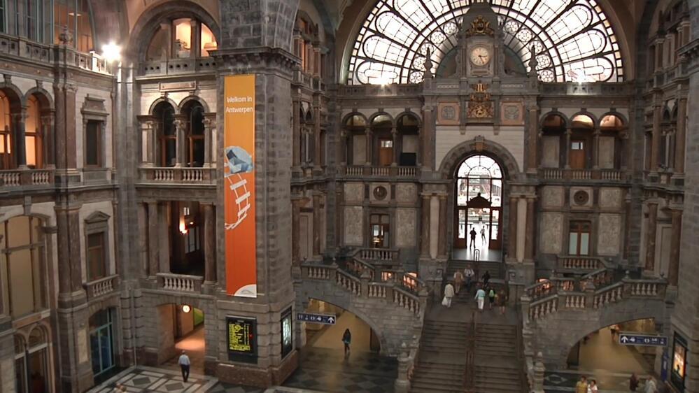BeschrijvingZicht op de architectuur van de inkomhal van station Antwerpen-Centraal.