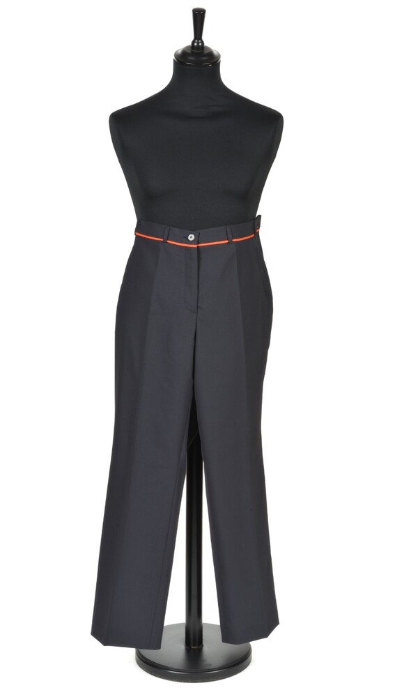 BeschrijvingDonkergrijze winterbroek met een oranje bies bovenaan. Op de grijs/oranje knopen staat het logo van NMBS.