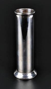 BeschrijvingDeze zilveren vaas is smal en recht en was bedoeld om een klein bloemstuk op tafel te plaatsen. In de buitenkant is het NMBS logo gegraveerd.