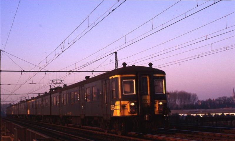 De reizigerstrein is samengesteld uit drie tweeledige motorstellen: de nummers 033, 016 en 020. Alle drie horen ze tot reeks 00, schijf 1950. Van deze schijf werden 25 exemplaren gebouwd in 1950. De kast van dit exemplaar werd door La Brugeoise et Nicaise & Delcuve vervaardigd. De elektrische onderdelen werden door ACEC/SEM geleverd. Het motorstel behaalde een snelheid van 130 km/u en had 168 zitplaatsen (30 eerste klas en 138 tweede klas). Het bestond uit een rijtuig AB (eerste en tweede klas) en een rijtuig BD (tweede klas en bagageruimte). Deze motorstellen waren uitgerust met hoge opstappen waardoor ze slechts konden ingezet worden op lijnen met hoge perrons. Hun inzet bleef beperkt tot de lijnen Brussel - Antwerpen - Essen en Brussel - Charleroi. Schenking van Myriam Hendrickx.