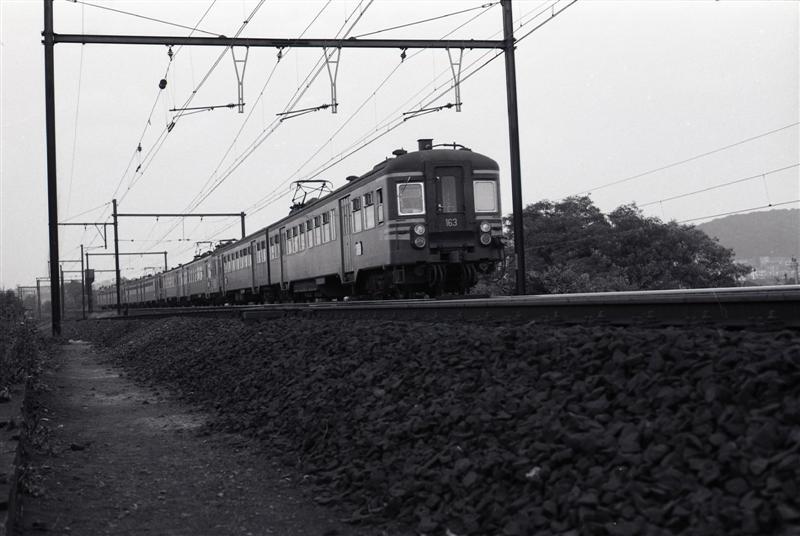 Motorstel 163 hoort tot reeks 00, schijf 1962. Van deze schijf werden 60 exemplaren gebouwd in 1962-'63. De kast van dit exemplaar werd door ABR Familleureux vervaardigd. De elektrische onderdelen werden door ACEC geleverd. Het motorstel behaalde een snelheid van 130 km/u en had 180 zitplaatsen (28 eerste klas en 152 tweede klas). Het bestond uit een rijtuig B (tweede klas) en een rijtuig ABD (eerste klas, tweede klas en bagageruimte). Schenking van Myriam Hendrickx.