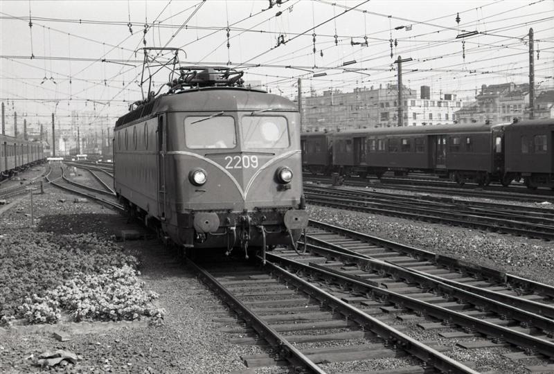 Elektrische locomotief 2209 aan het perron te Brussel-Zuid