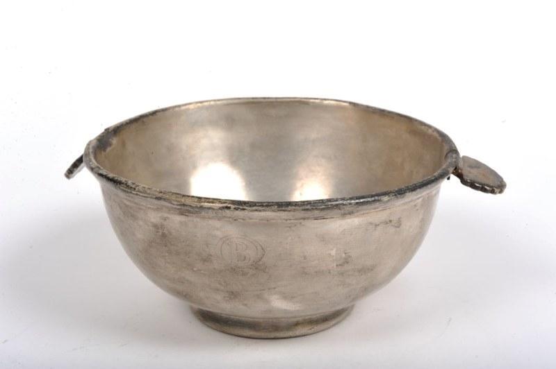 BeschrijvingKom met twee geschubde platte oortjes. In de zijkant is het NMBS-logo gegraveerd.