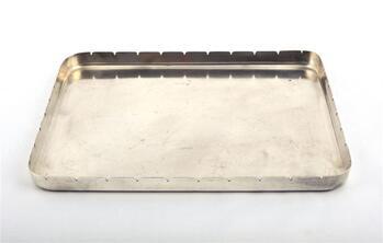 BeschrijvingRechthoekige schotel met een gekartelde opstaande rand. Op de onderkant is het NMBS-logo gegraveerd.
