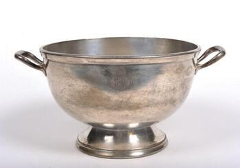 BeschrijvingKom op een brede voet met open oren. In de zijkant is het NMBS-logo gegraveerd.